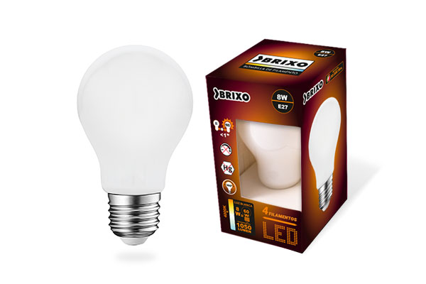 BOMBILLA LED FILAMENTOS STANDAR E27 BRIXO 4 FILAMENTOS – 8W 6500K 1050L – 801449 / 801207